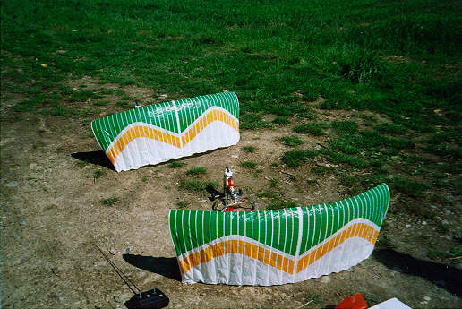 Photos n°13Paramoteur ready-to-fly. A mettre entre toutes les mains et à toujours avoir avec soi dans le coffre de la voiture !!! Voile en feuille plastique avec nervures mousse, chassis en plastique, radio 2 voies (direction+moteur), moteur type speed 280, envergure 1200mm