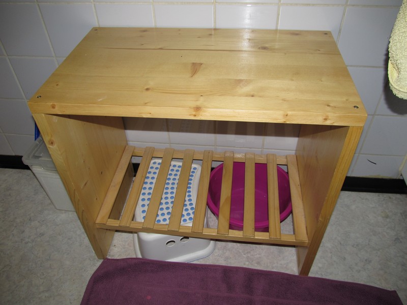 Un support pour le panier à linge et un plateau pour s'assoir.