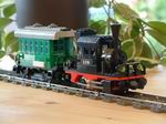 Enfin! J'ai réussi à monter une locomotive à vapeur qui me plait vraiment. Une toute petite machine qui remplace avantageusement ma "petite électrique" pour le train de campagne vert. L'inspiration est donc la BR 98 (appelée "caisse de verre"), une charmante petite machine trouvée dans la catalogue Modelco (modèle Märklin). Coup de foudre pour ce petit truc vraiment très chouette, à tel point que l'idée a séduit beaucoup de fans. Voici la plus ancienne ... en Lego!