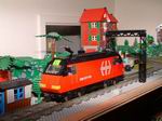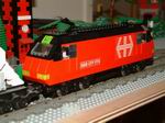 Locomotive moderne des CFF, dont les premières séries ont été introduites avec le concept "Rail 2000". C'est l'une des plus belle machine en service, grâce au génie de Pininfarina. Mon modèle ne vaut pas, et de loin, la réelle, mais l'idée est là. Elle est munie de deux moteurs.