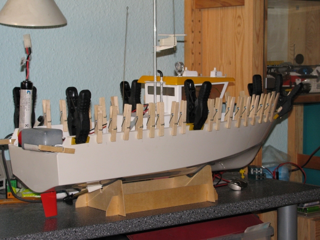 Et voilà l'étape tant redoutée... le collage du pont sur la coque!